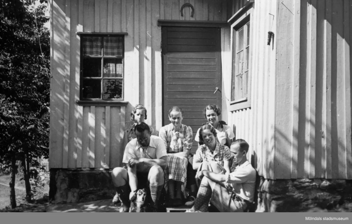 Liten släktträff utanför huset, 1932. Med på bild: Sonja, Augusta, Signhild och Arnold.