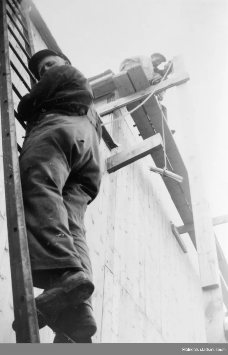 Nils Andersson och Albert Persson bygger om 2 vån. på Långö, 1959.