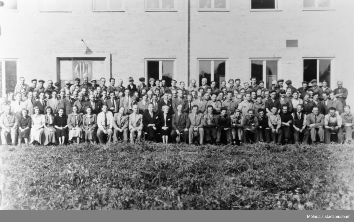 A.B. Pumpindustri arbetare uppställda för foto, 1960-talet. Helmer Garthman var filare till yrket.
