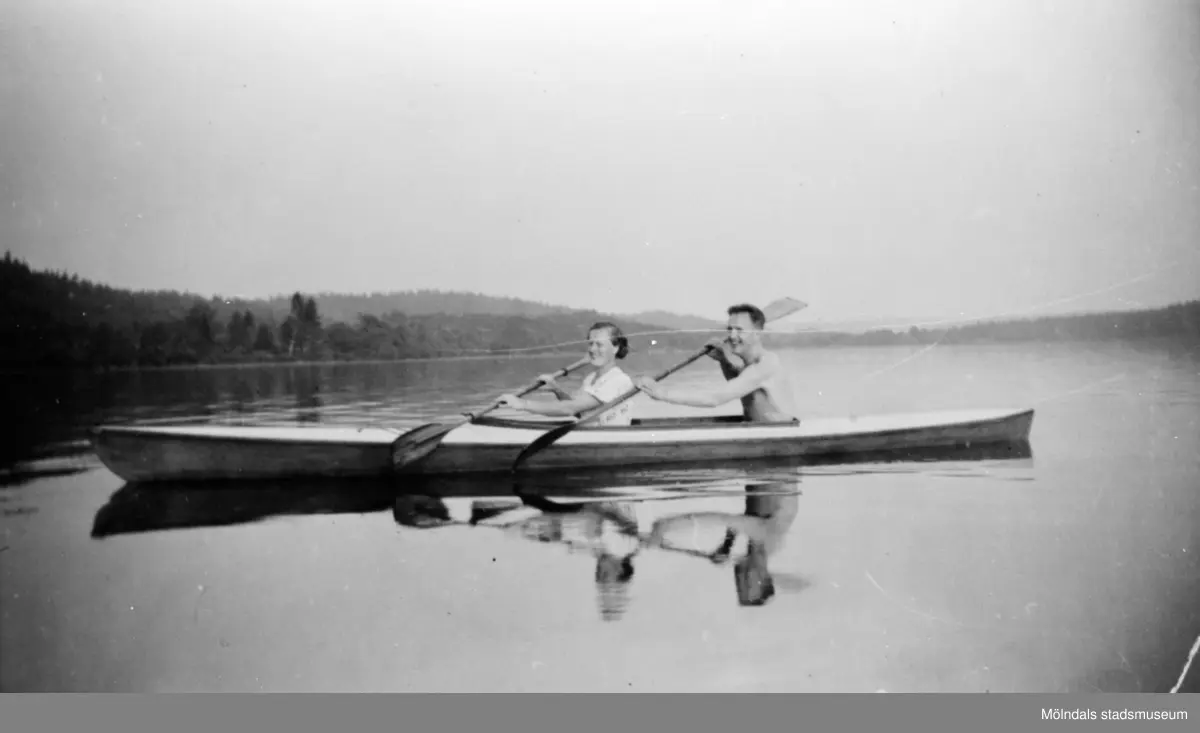 En stilla kanotfärd på Nordsjön Sonja och Werner paddlar, 1920.