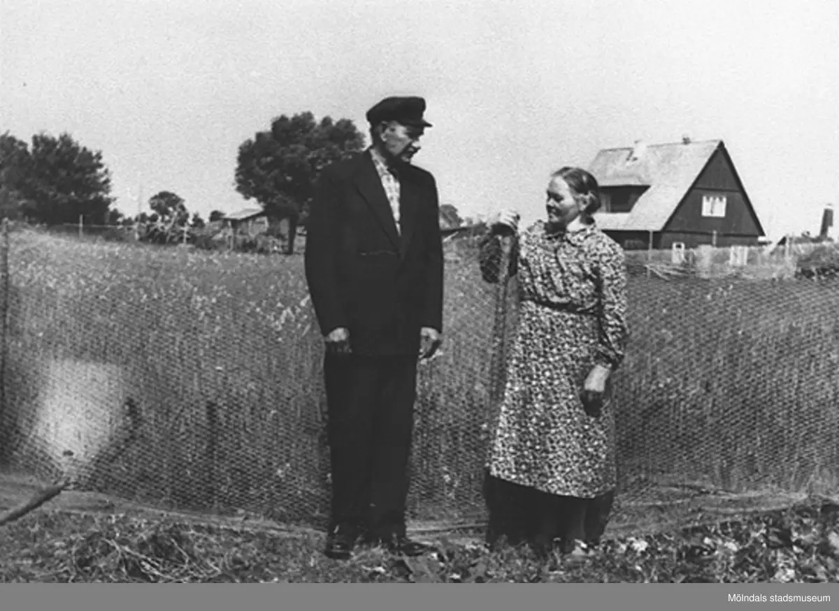 Saidas föräldrar tillbaka i Ösel år 1962. Ivan och Anna Rosin står framför ett sädesfält. Hösten 1944 flydde 32.000 estländare från kriget i Estland till Sverige. Ett sextiotal personer tog jobb på August Werners textilfabrik i Lindome.
