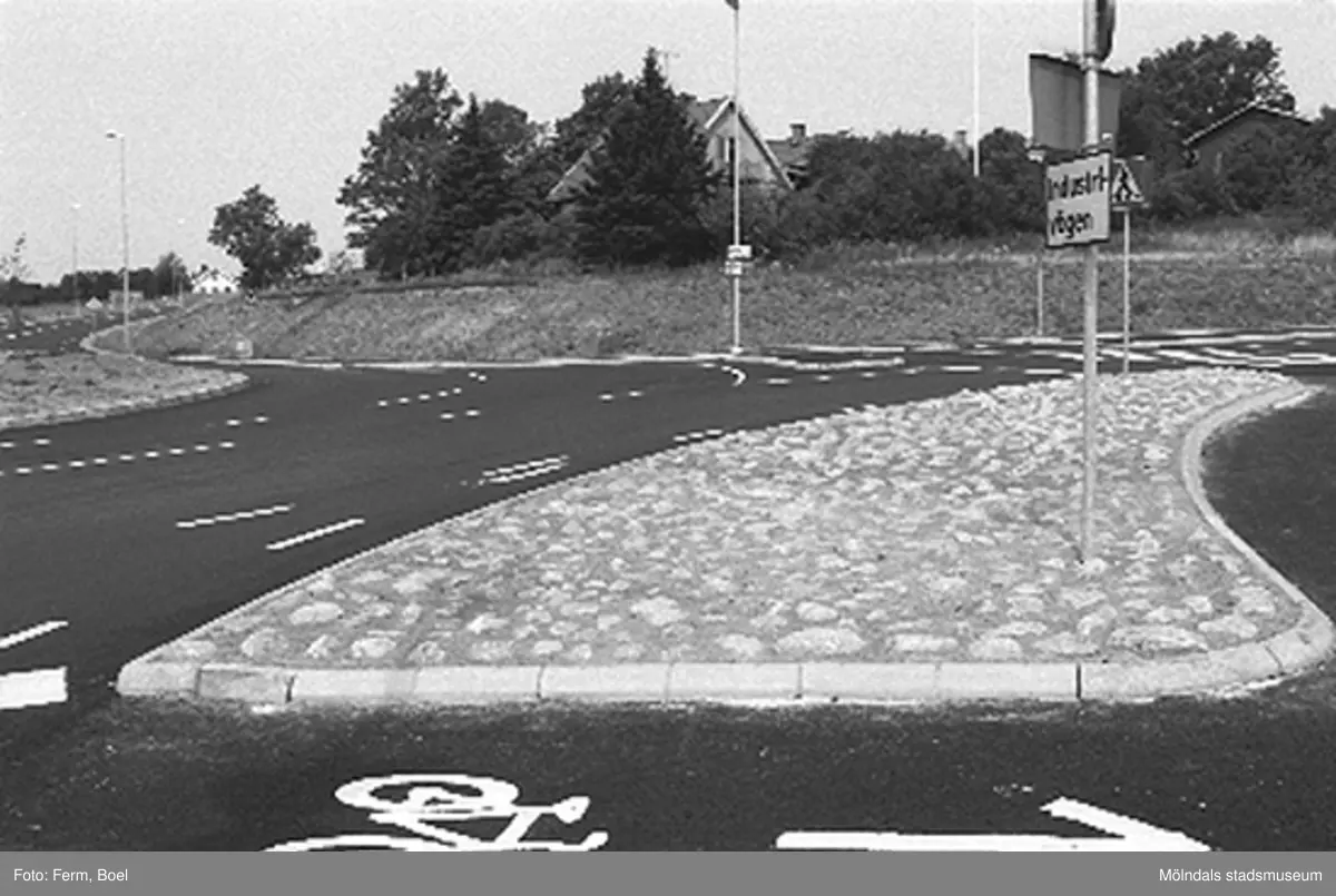 Cykelväg och rondell vid bostadshuset Ranntorp 2:2 i Lindome 1992-06-30.