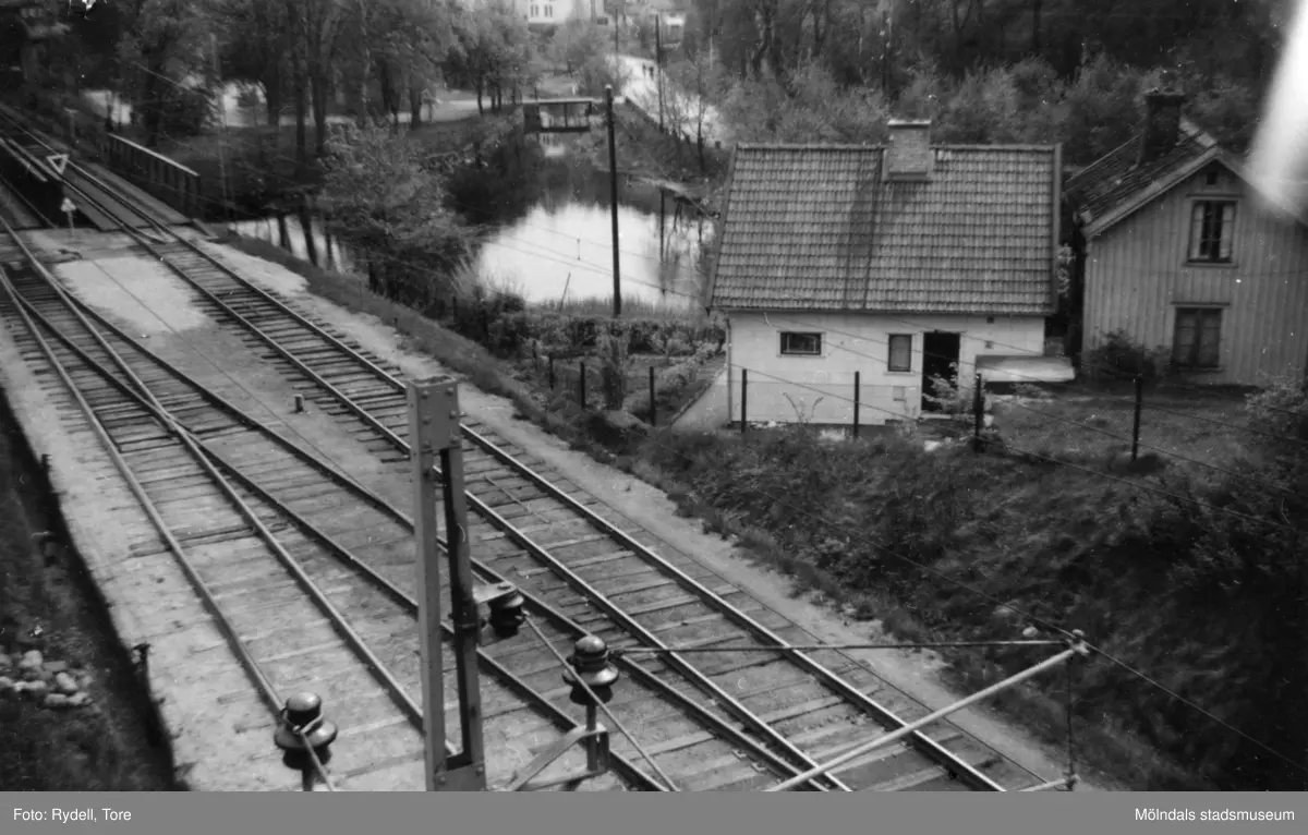 Järnväg och hus vid Pixbovägen i Grevedämmet, Mölndal.