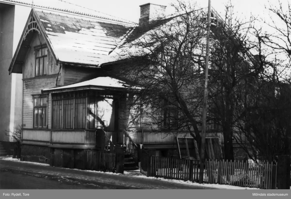Fastighet vid Frölundagatan i Mölndalsbro, Mölndal, en vinterdag på 1960-talet.