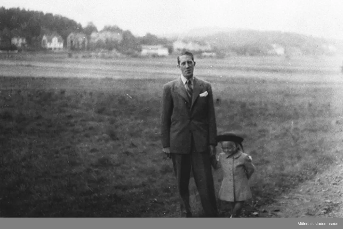 Eva Pettersson har varit på besök i Slottskogen med pappa "Petter", 1947. De är nu på väg hem till Torrekulla.