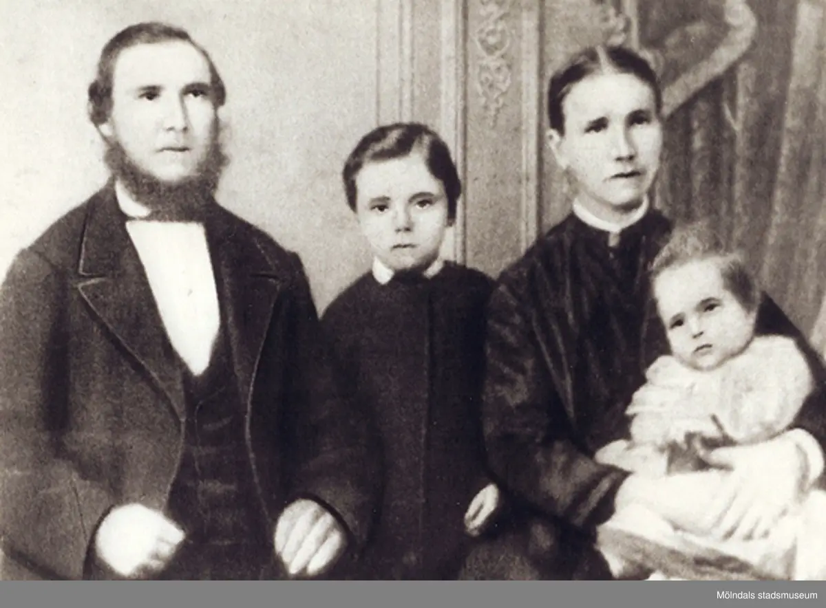 Familjen Andersson år 1873. Karl Magnus Andersson (1836 - 1892), Sofia Rebecka Andersson (1837 - 1917), Gustaf Adolf (född 1865) och Albertina Rebecka (1872 - 1958, gift Brandberg). År 1879 återbyggde Karl Magnus Roten M 18 (idag: Stockliden 1) efter att det hade plockats ner i Göteborg. Han arbetade på Korndals bruk.