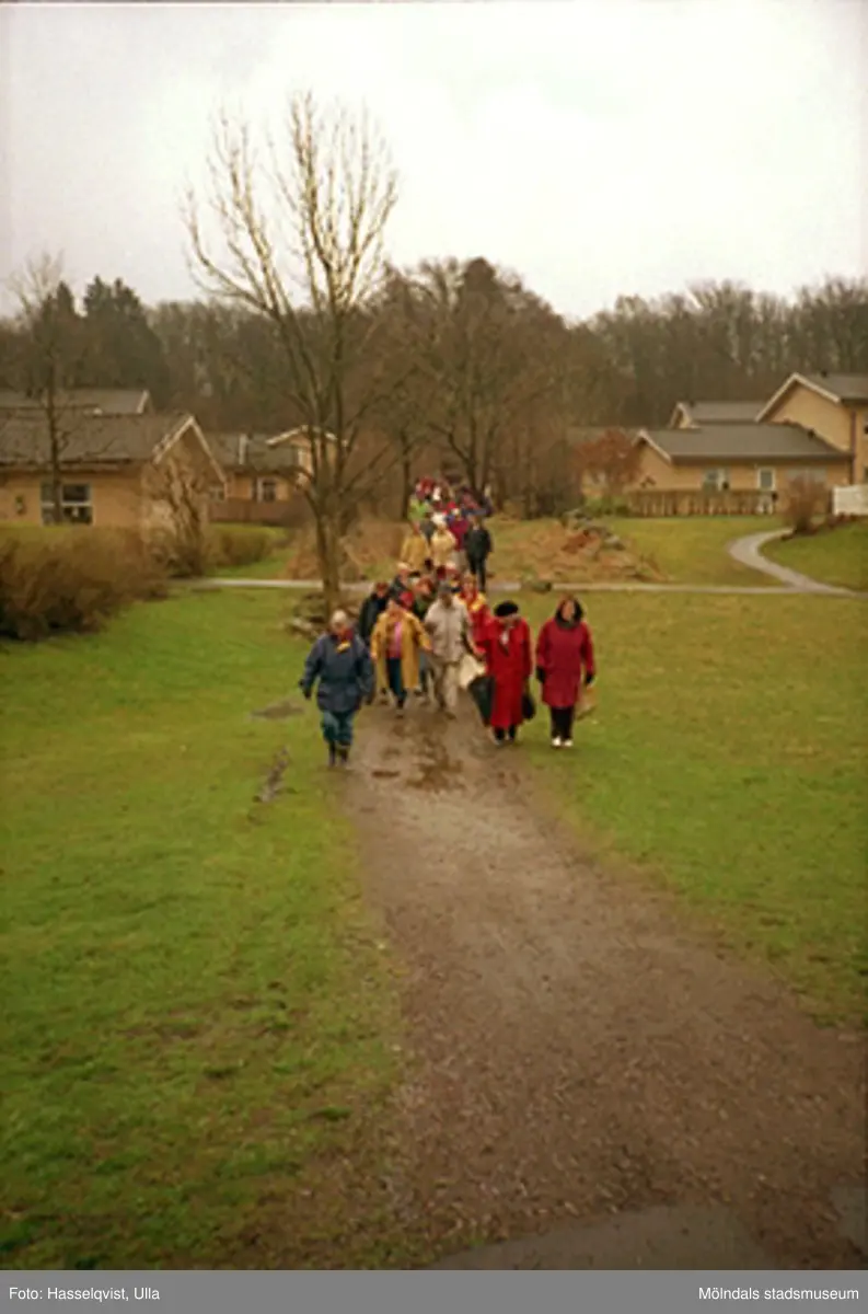 Besökare som vandrar i området vid Ullas Lyckas väg. Invigning av Natur- och Kulturstigen i Livered, Kållered, år 2000.