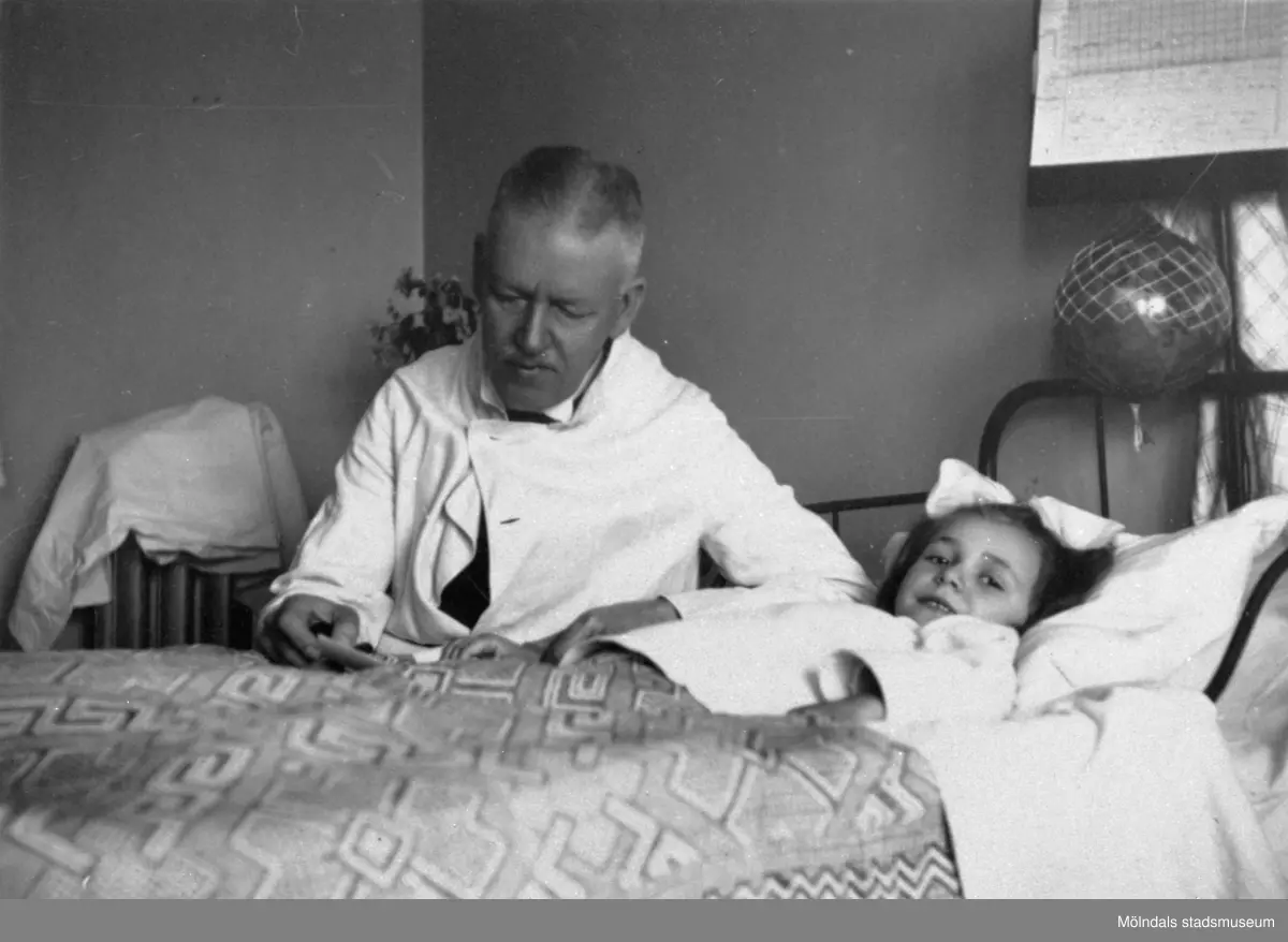 Dr Lundén och Lisa Malmberg på Mölndals sjukhus, (Norra) Forsåkersgatan 19 i Kvarnbyn, 1920-tal. Mölndals polisstation och Mölndals museum huserade senare i dessa lokaler.