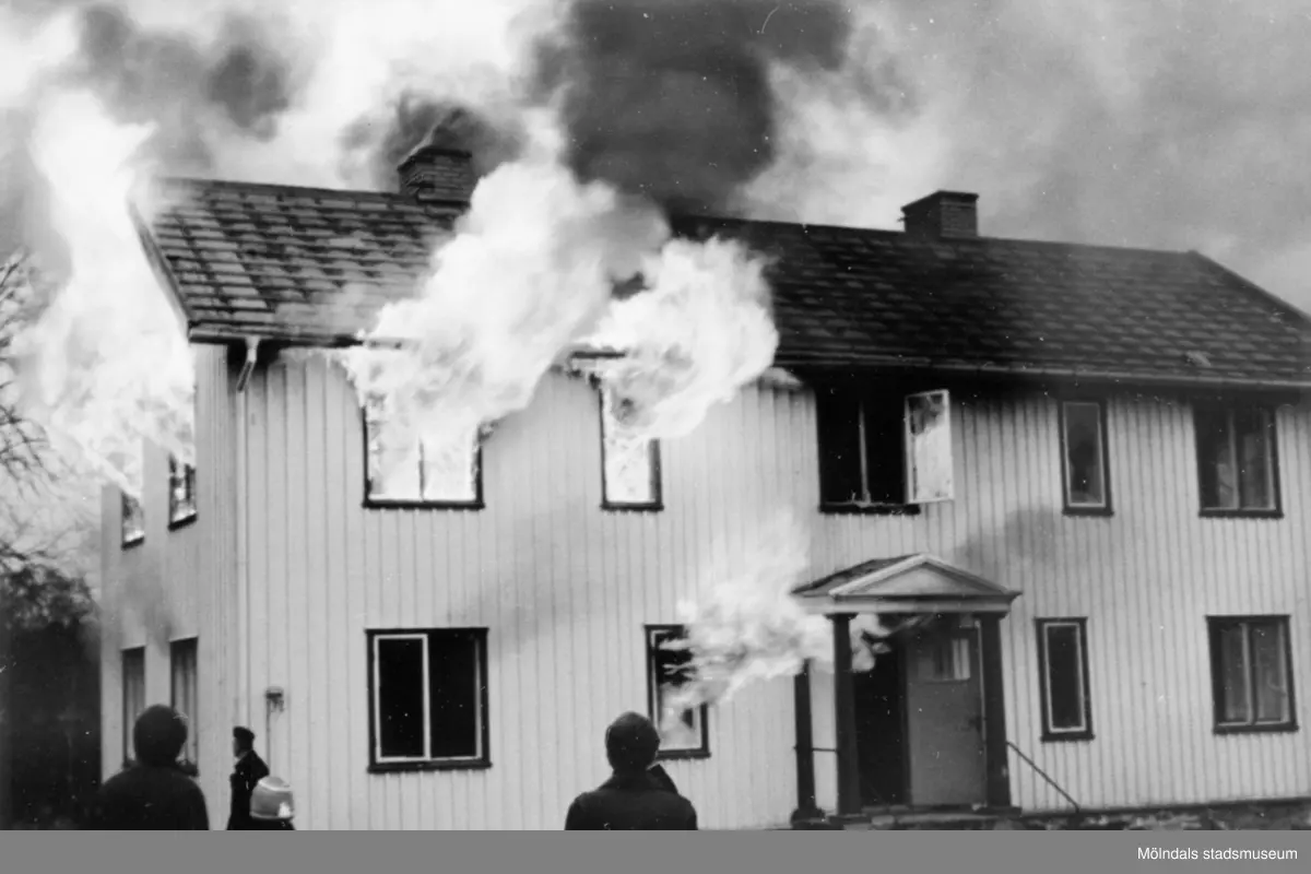 Borgarbrandkåren övar att släcka brand på Bergmans affär i Annestorp.