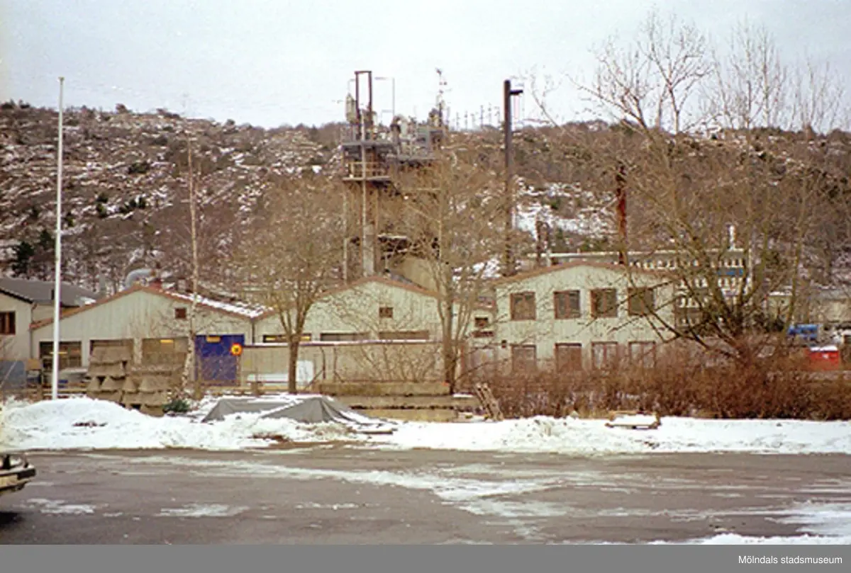 Byggnadsdokumentation av Akzo Nobel på Ågatan 44 i Lackarebäck, 2000-02-15. Fasad mot väster vid Mölndalsån.