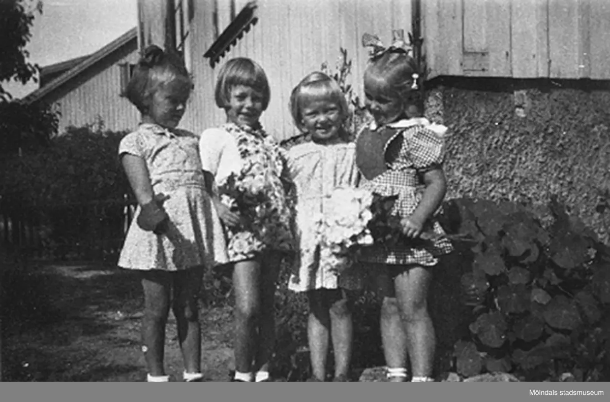 Fyra barn på Krokslätts daghem, Dalhemsgatan 7 i Krokslätt, 1948 - 1951.