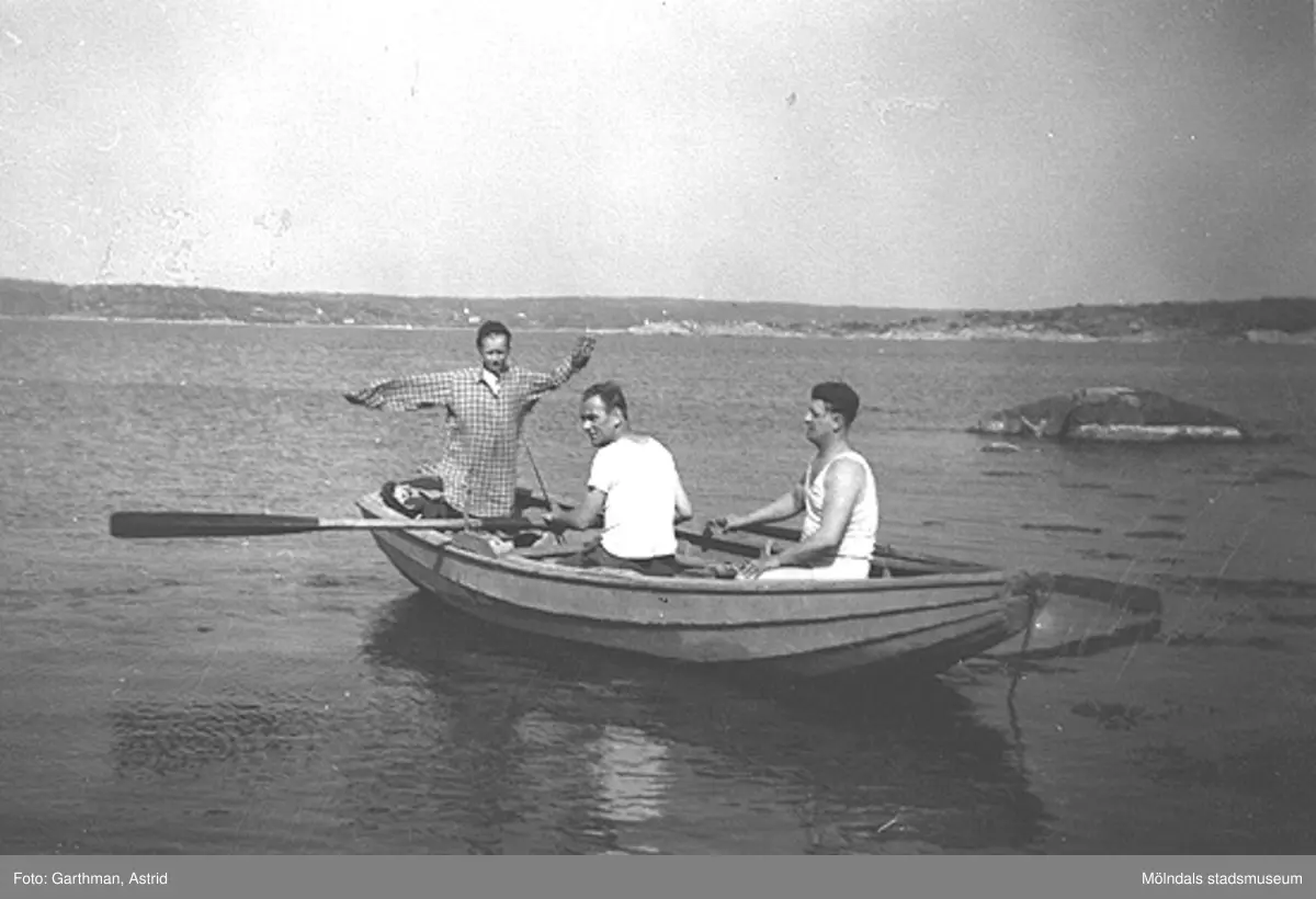 I familjen Garthmans eka vid Näset. Från vänster: Leif Garthman, Egron Andersson och Helmer Garthman. 1950-tal.