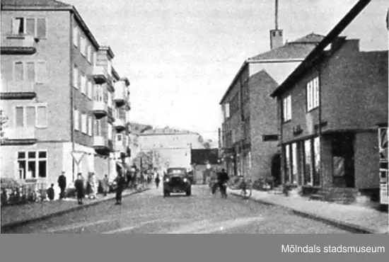 Frölundagatan (nuvarande Brogatan) österut, okänt årtal. Avfotograferad ur "Mölndal 1922 - 1947".
