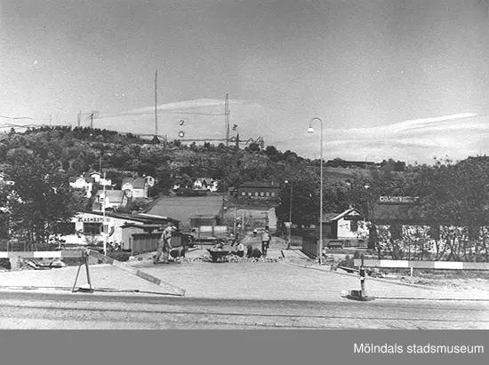 Fredriksgatan sedd från väster, 1940-tal. I bakgrunden ligger stadsdelen Trädgården, Enerbacken och Störtfjället. Till vänster syns Mölndals Glasmästeri och till höger en liten stuga som hade en skylt som det stod Mölndals Mekaniska på. Ännu längre in till höger låg LMC, Lantbrukarnas Mjölkcentral. Huset fick därefter logistikföretaget Bilspedition som hyresgäst.