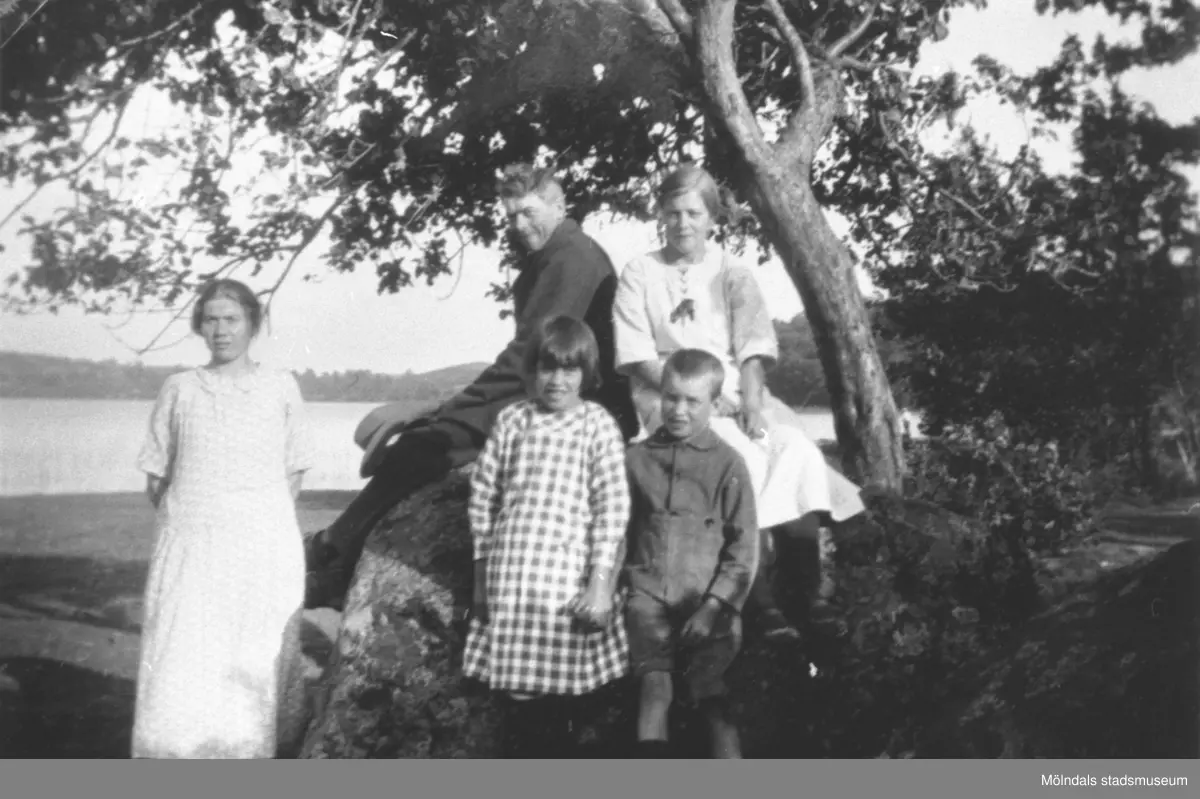 Familj som arbetade på Sterered sitter vid Tulebosjön, okänt årtal.
