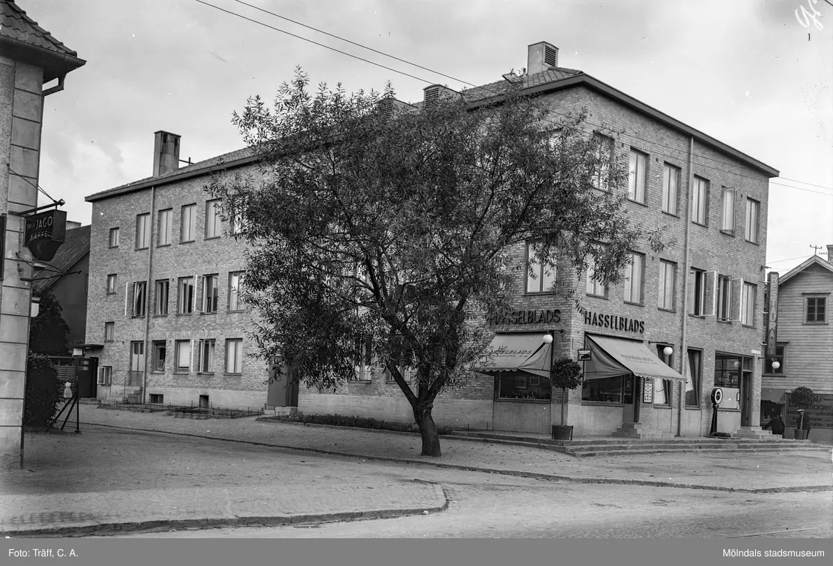 Hantverkshuset i Mölndalsbro, Mölndal. Fasader mot Lillgatan och Kungsbackavägen. Vy från Kungsbackavägen.