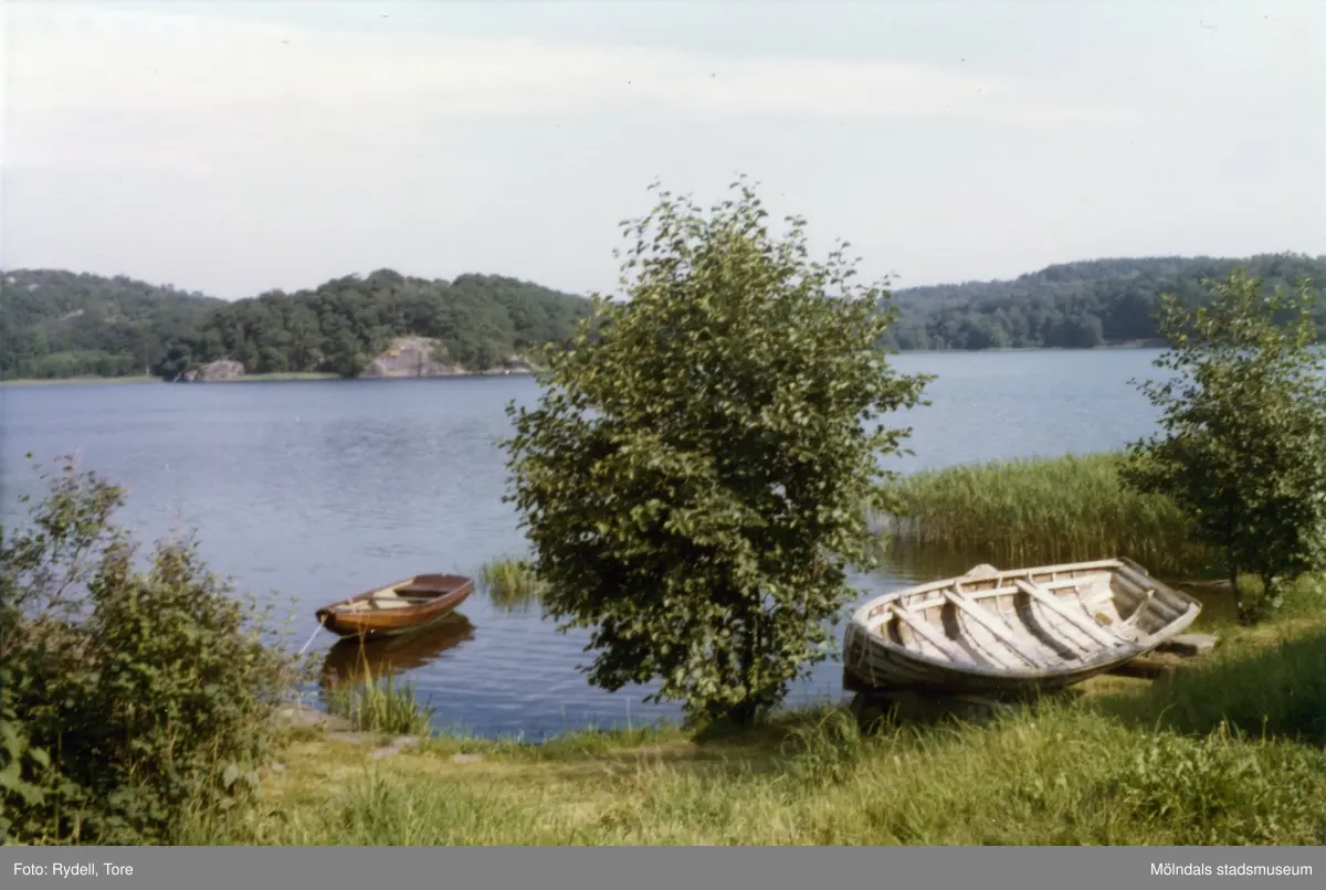 Vy över Stensjön från Strandpromenaden i Mölndal på 1970-talet. På andra sidan sjön ses Hökkullen.