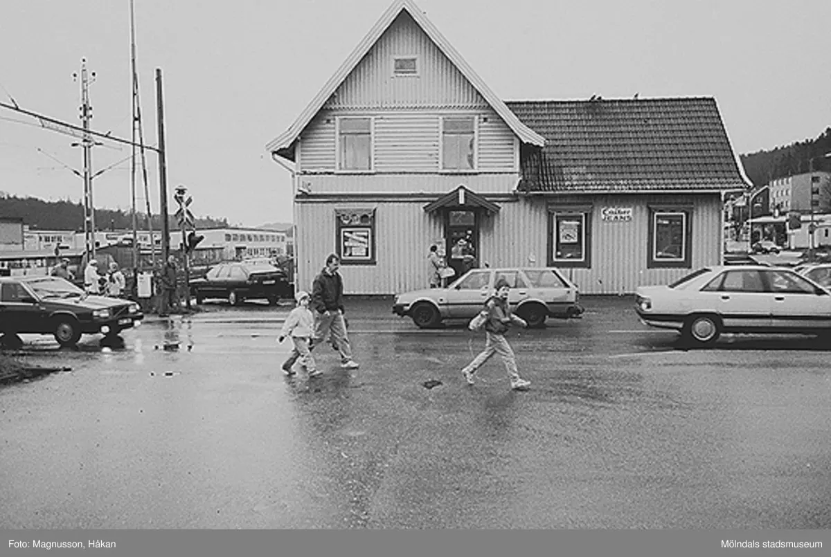 Byggnadsdokumentation inför rivning. Kållereds station på Våmmedal 3:135 i Kållereds centrum, februari 1991.