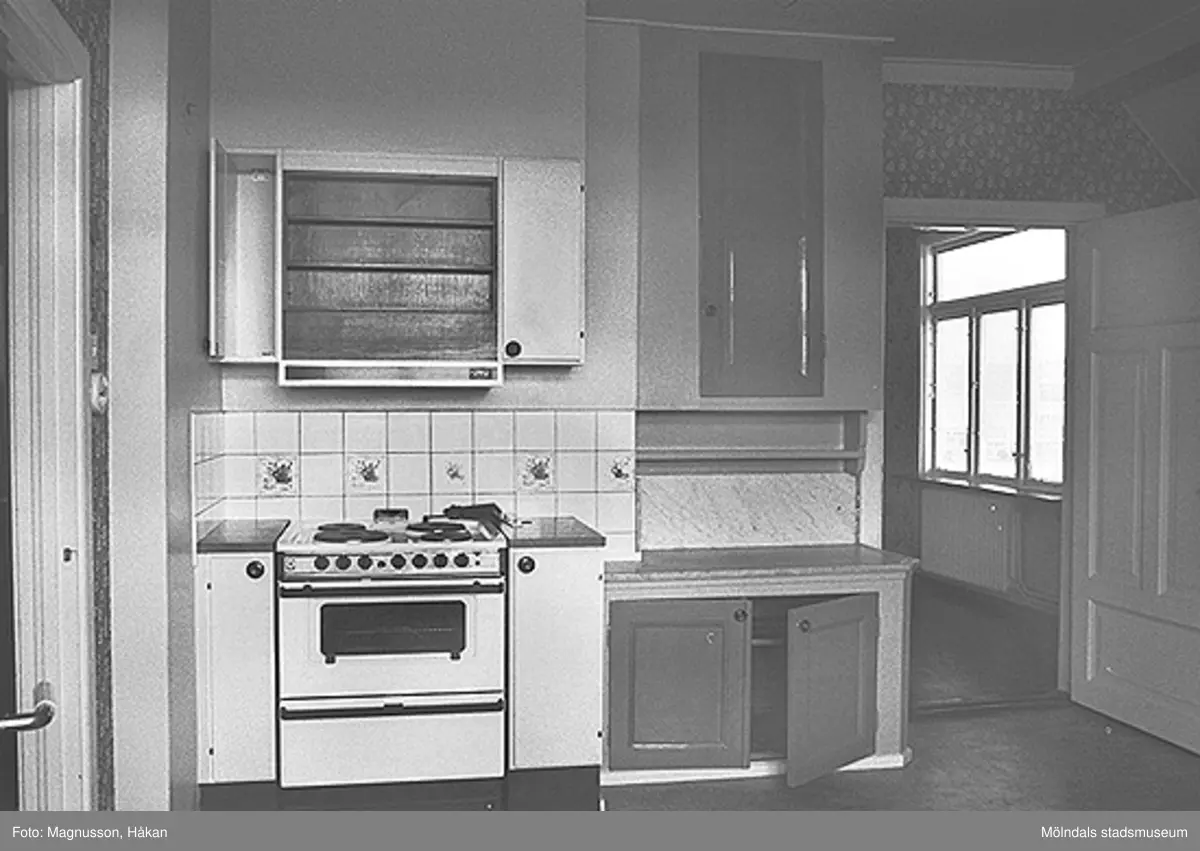 Byggnadsdokumentation inför rivning. Kök i Kållereds station på Våmmedal 3:135 i Kållereds centrum, februari 1991.