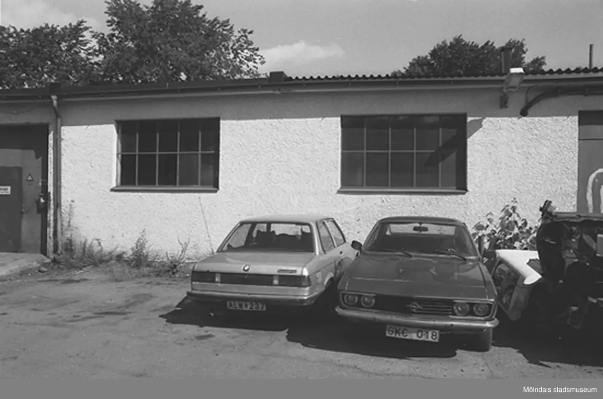 Före detta spinneriet Bettyholm/Carlsfors/Forsåkers fabriker "övre" med bilar utanför, hösten 1994.