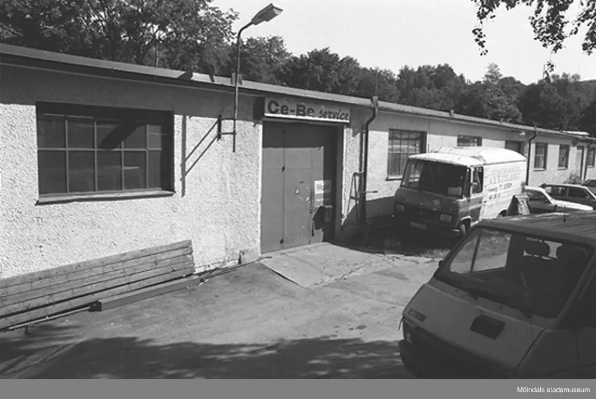 Garageinfart med bilar utanför, hösten 1994. Före detta spinneriet Bettyholm/Carlsfors/Forsåkers fabriker "övre".