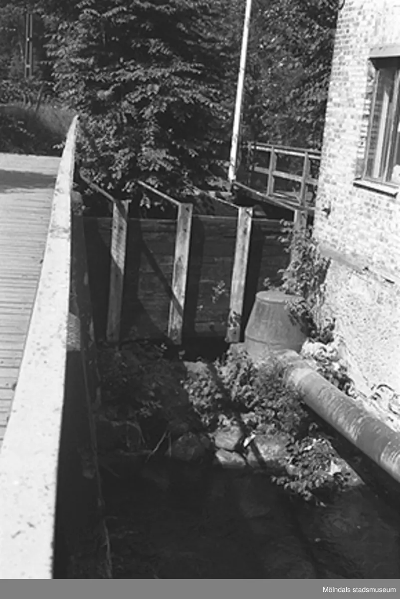 Spång över forsen vid Carlsfors fabriker (Spinneriet), hösten 1994. Före detta spinneriet Bettyholm/Carlsfors/Forsåkers fabriker "övre".