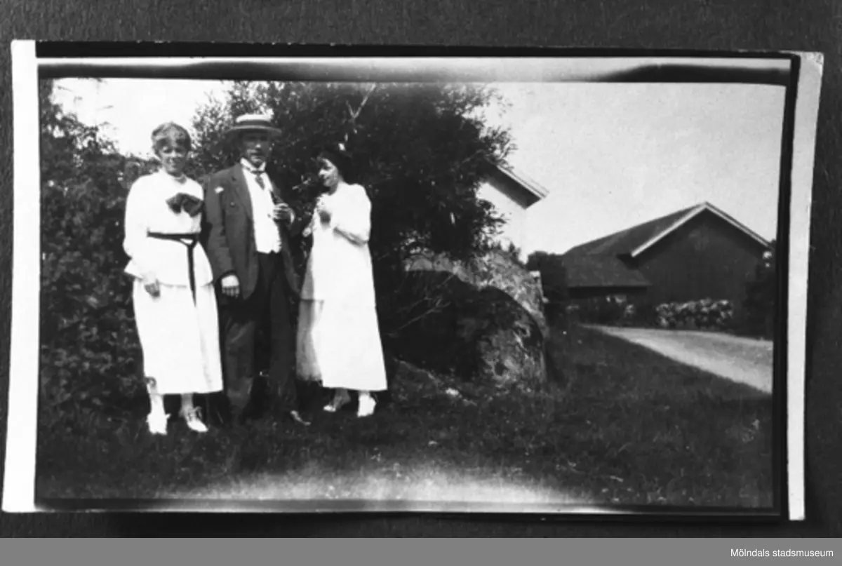 Carl Krantz (skomakare på Stretereds skolhem) tillsammans med vänner från Göteborg, Stretered början av 1920-talet.