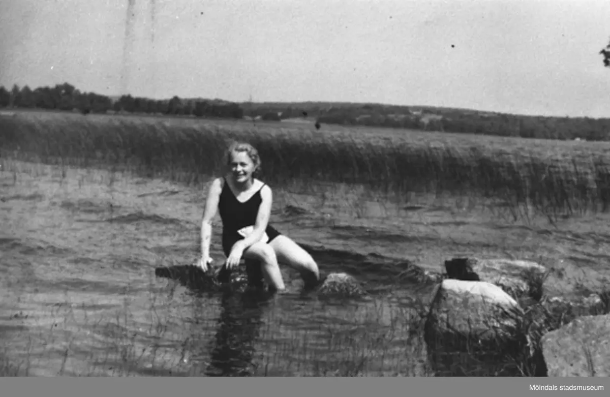 Rosa Krantz (gift Pettersson) badar i Tulebosjön vid Stretered, 1922-25. Rosa var mamma till givaren.