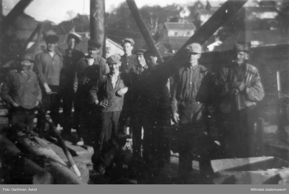 Avloppsläggning på Kvarnbygatan under 1930-talet. Givarens morfar, Viktor Karlsson, finns med på bilden.