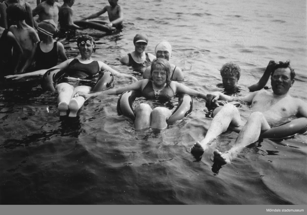 Kvinnor och barn badar i Tulebosjön, 1930-tal. Den piprökande mannen till höger är Karl Alberts.