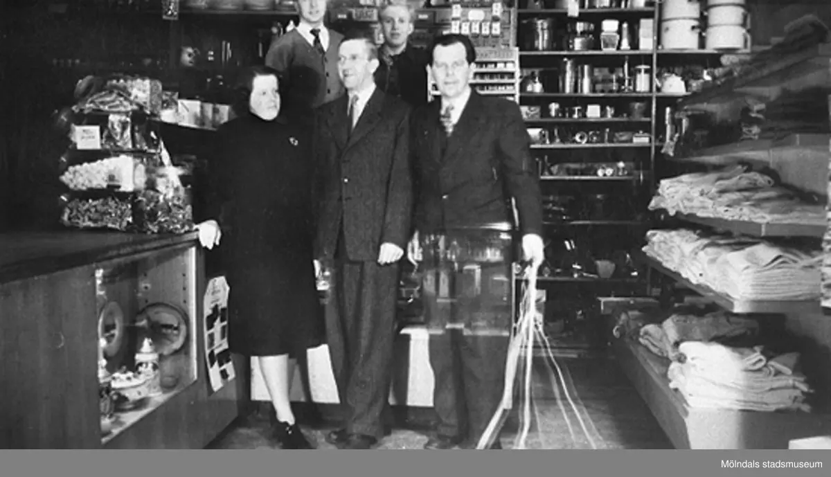 En grupp personer i en lanthandel, 1937-1940-tal.