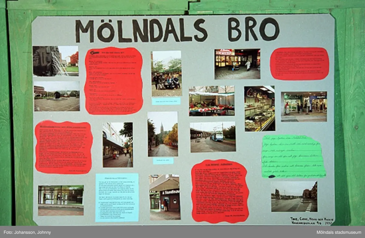 Utställning på Mölndals museum vecka 44 och 45 samt i Stadshushallen vecka 46, år 1996. Mölndalsbro i dag - ett skolpedagogiskt dokumentationsprojekt på Mölndals museum under oktober 1996. 1996_1370-1375 är gjorda av högstadieelever från Kvarnbyskolan 9D. Se även gruppbilder på klasserna 1996_1382-1405 och samtliga bilder från den färdiga utställningen 1996_1358-1381.