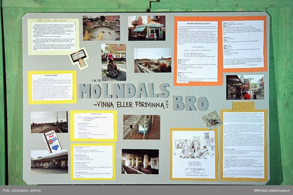 Titel: Utställning på Mölndals museum vecka 44 och 45 samt i Stadshushallen vecka 46, år 1996. Mölndalsbro i dag - ett skolpedagogiskt dokumentationsprojekt på Mölndals museum under oktober 1996. 1996_1358-1363 är gjorda av högstadieelever från Kvarnbyskolan 9A. Se även gruppbilder på klasserna 1996_1382-1405 och samtliga bilder från den färdiga utställningen 1996_1358-1381.