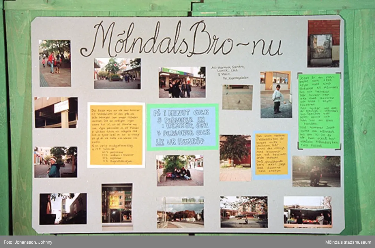 Utställning på Mölndals museum vecka 44 och 45 samt i Stadshushallen vecka 46, år 1996. Mölndalsbro i dag - ett skolpedagogiskt dokumentationsprojekt på Mölndals museum under oktober 1996. 1996_1358-1363 är gjorda av högstadieelever från Kvarnbyskolan 9A. Se även gruppbilder på klasserna 1996_1382-1405 och samtliga bilder från den färdiga utställningen 1996_1358-1381.