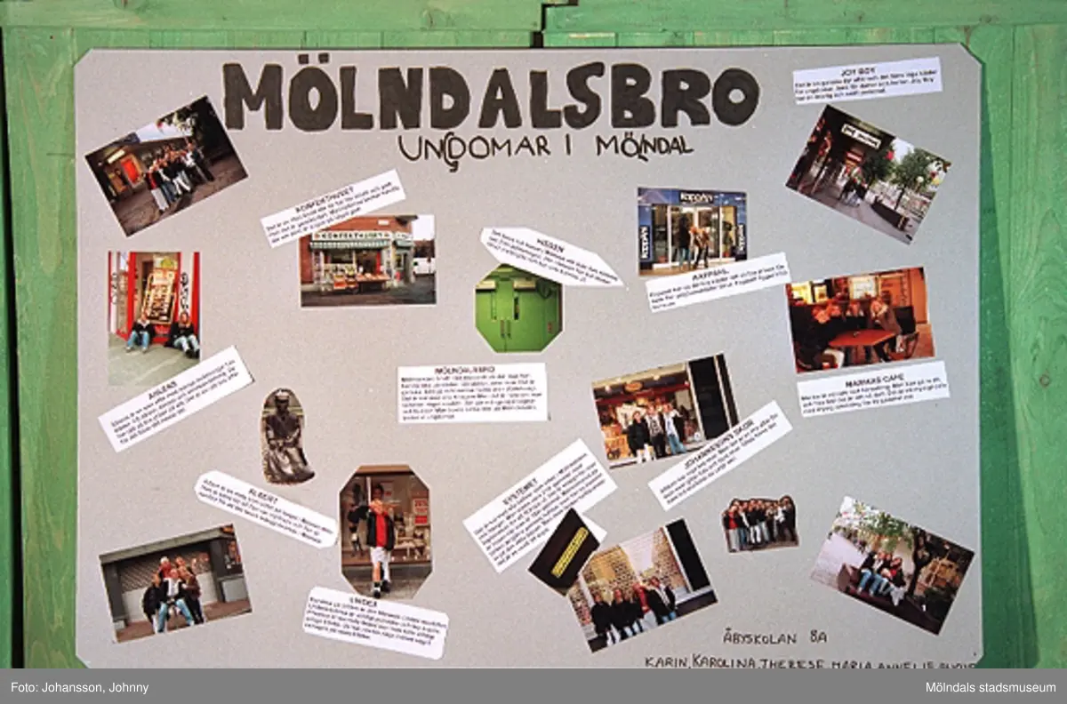 Utställning på Mölndals museum vecka 44 och 45 samt i Stadshushallen vecka 46, år 1996. Mölndalsbro i dag - ett skolpedagogiskt dokumentationsprojekt på Mölndals museum under oktober 1996. 1996_1376-1381 är gjorda av högstadieelever från Åbyskolan 8A. Se även gruppbilder på klasserna 1996_1382-1405 och samtliga bilder från den färdiga utställningen 1996_1358-1381.