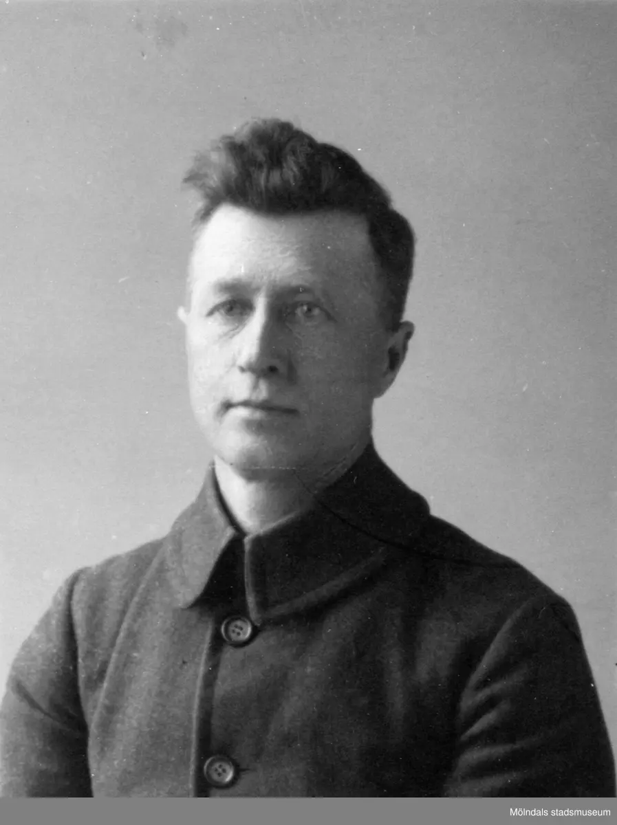 Porträtt av Claes Håkansson i unga år. Han arbetade som kusk/chaufför på Gunnebo slott mellan 1905-1957.
