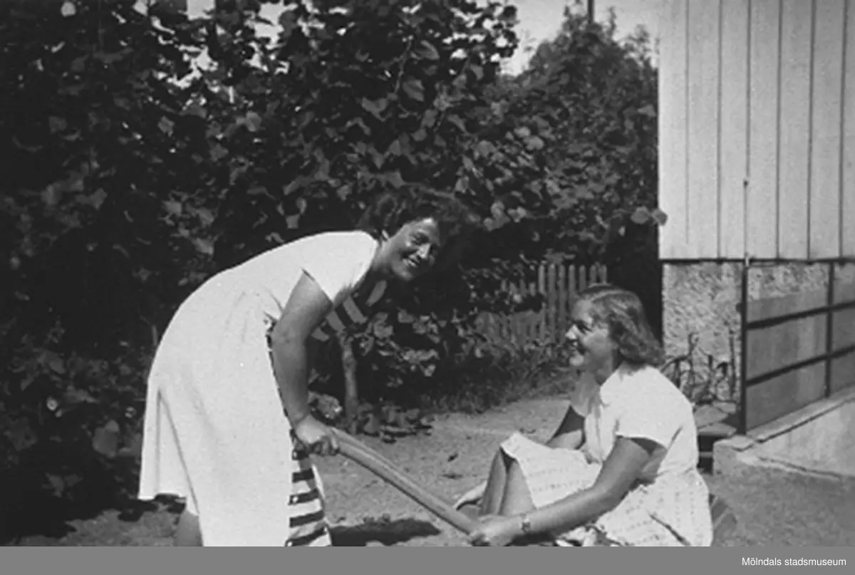 Läraren Margit Emilsson (gift Wannerberg -52) drar en okänd i kärra vid
