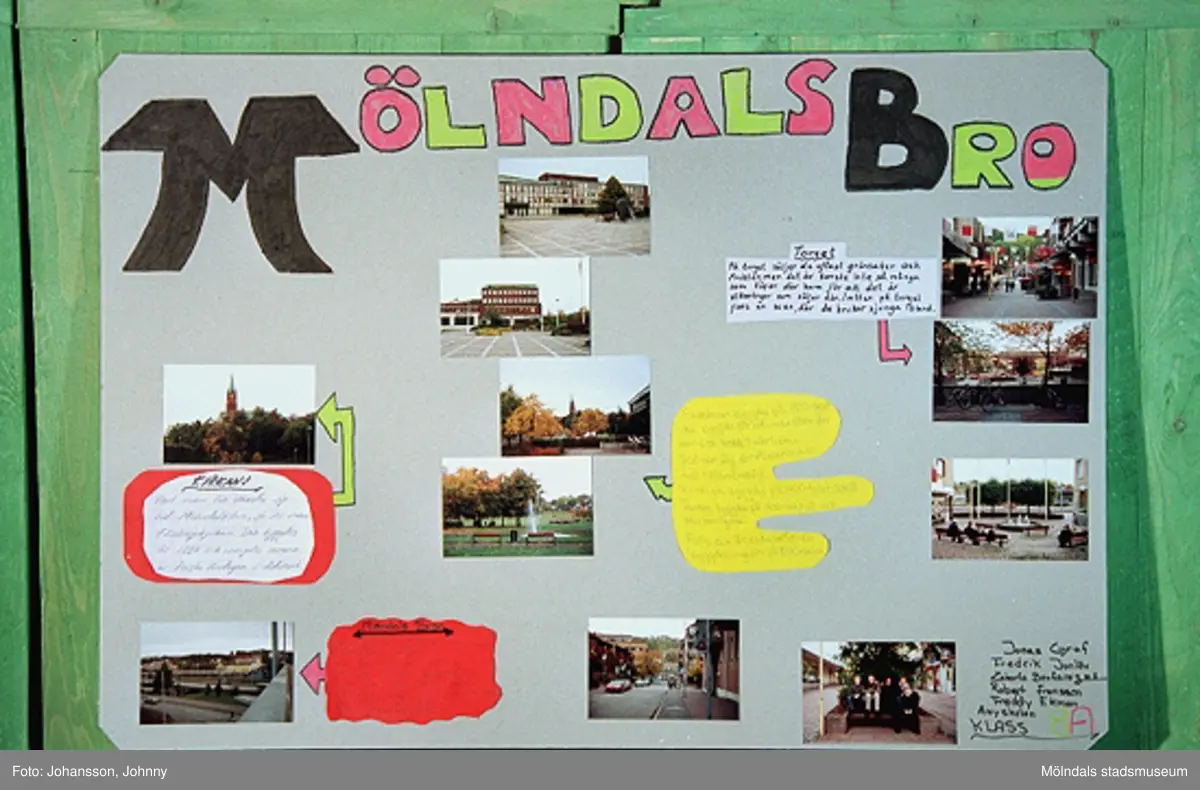 Utställning på Mölndals museum vecka 44 och 45 samt i Stadshushallen vecka 46, år 1996. Mölndalsbro i dag - ett skolpedagogiskt dokumentationsprojekt på Mölndals museum under oktober 1996. 1996_1376-1381 är gjorda av högstadieelever från Åbyskolan 8A. Se även gruppbilder på klasserna 1996_1382-1405 och samtliga bilder från den färdiga utställningen 1996_1358-1381.