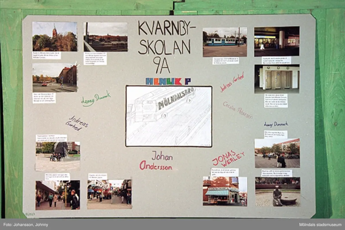 Utställning på Mölndals museum vecka 44 och 45 samt i Stadshushallen vecka 46, år 1996. Mölndalsbro i dag - ett skolpedagogiskt dokumentationsprojekt på Mölndals museum under oktober 1996. 1996_1358-1363 är gjorda av högstadieelever från Kvarnbyskolan 9A. Se även gruppbilder på klasserna 1996_1382-1405 och samtliga bilder från den färdiga utställningen 1996_1358-1381.