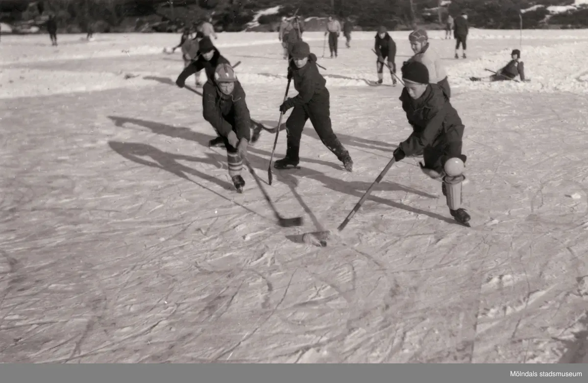 Ishockeyspel på Stensjön i Mölndal. 1930-tal?