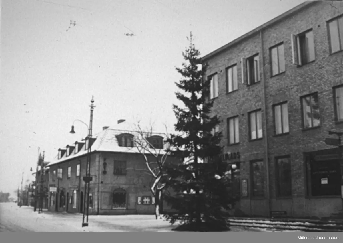 En av Mölndals kommunala julgranar på Kungsbackavägen 2 (Hantverkshuset) och 4, okänt årtal.