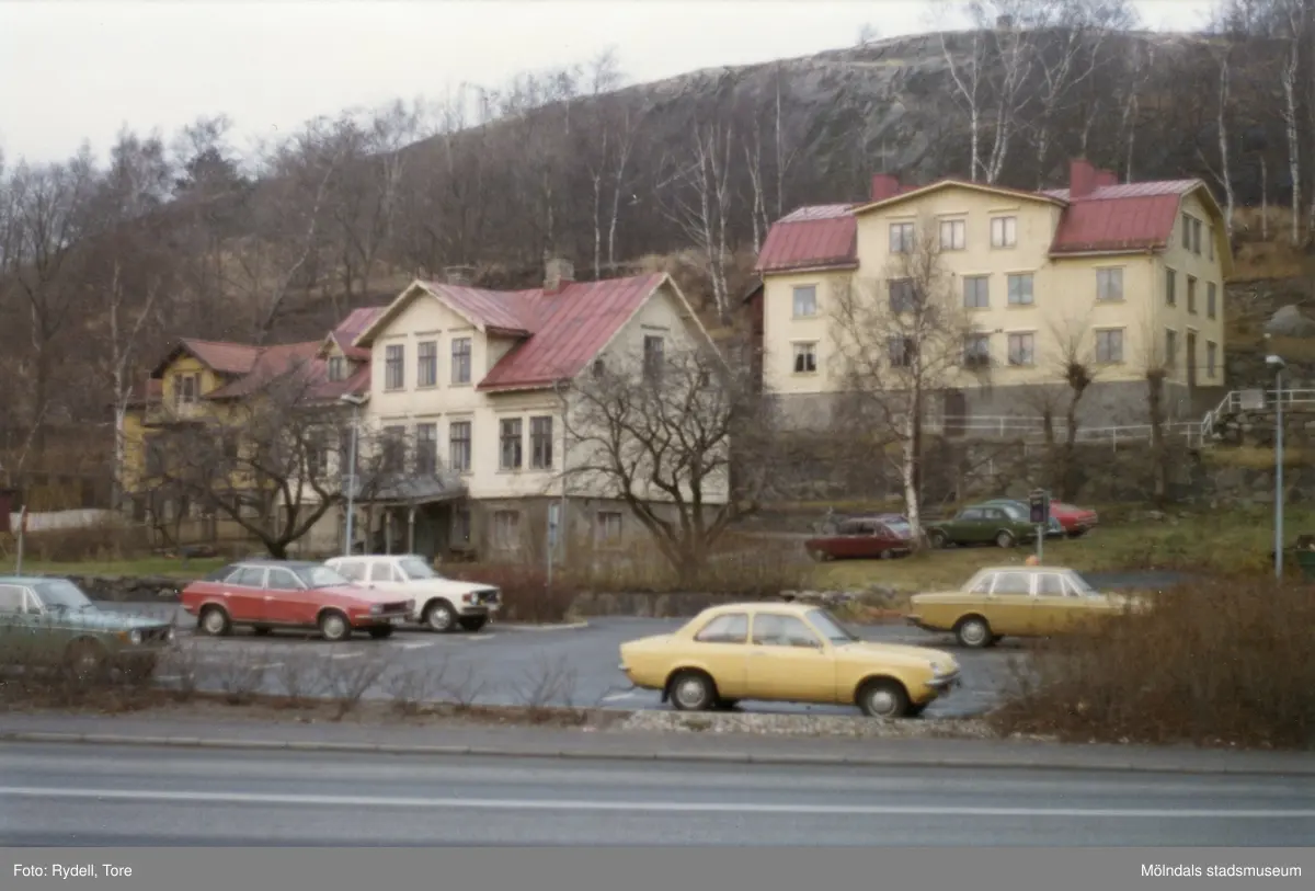 Bebyggelse vid Trädgårdsgatan i Trädgården, Mölndal, på 1970-talet. Till höger ses Norénska stiftelsens ålderdomshem.