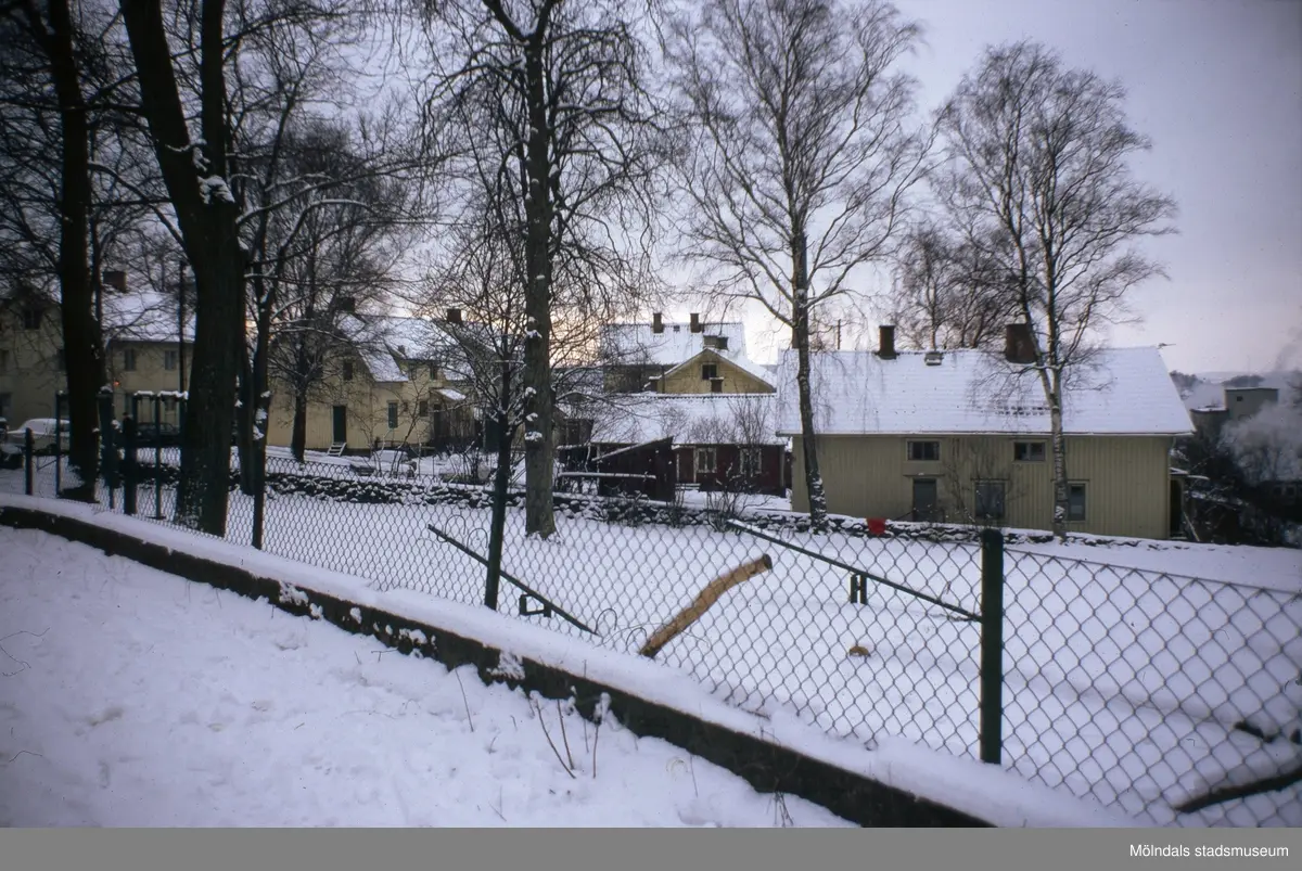 Kvarnbyparken i Mölndals Kvarnby, 1970-tal. I bakgrunden ses Roten M 37.