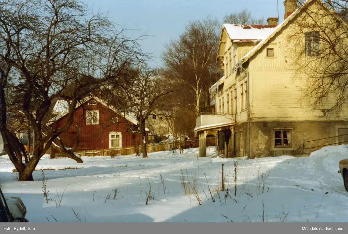 Trädgården i Mölndal på 1970-talet. Trädgårdsgatan 10, även kallat "Klubben". Huset har varit föreningslokal för Kvarnby basket och Länkens kamratförbund. Till höger ses huset Trädgårdsgatan 8.