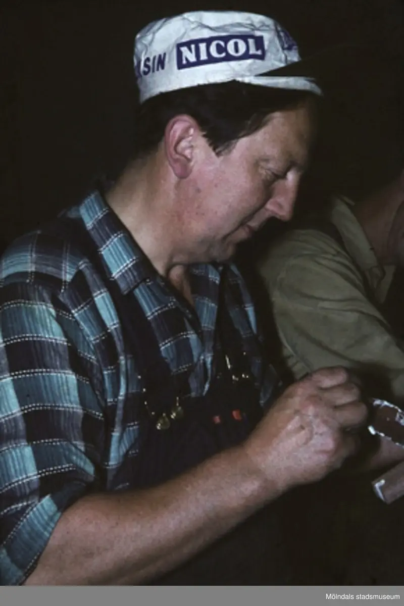 Erik Lagergren avporträtterad. Lamellplast, våren/sommaren 1960.