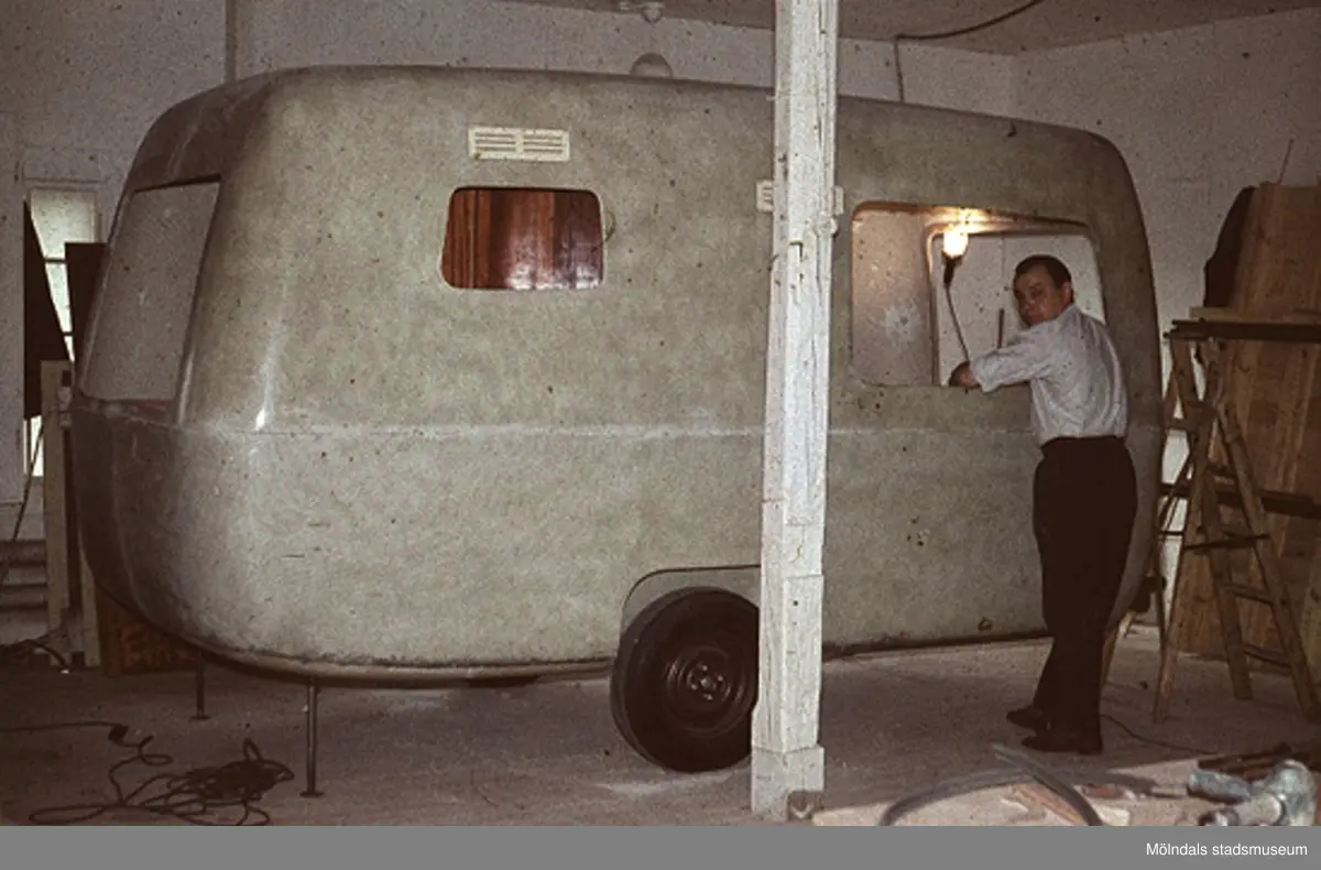 Husvagnsskal, prototyp. Lamellplast, våren/sommaren 1960.