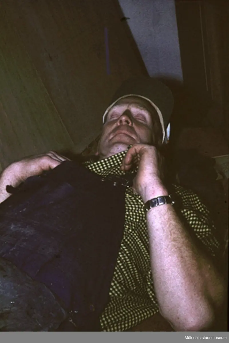 Knut Johansson vilar middag. Lamellplast, våren/sommaren 1960.