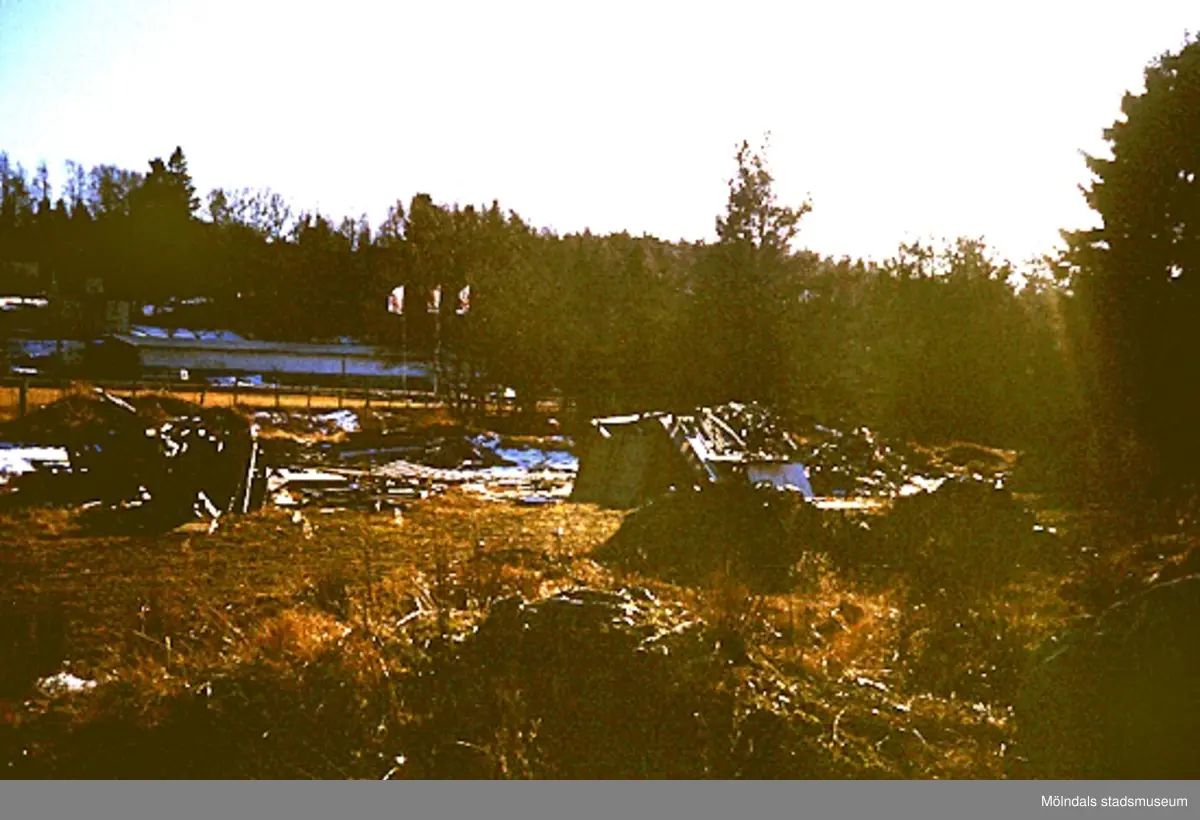 En ödetomt med bråte på. Hällesåker, mars 1994.