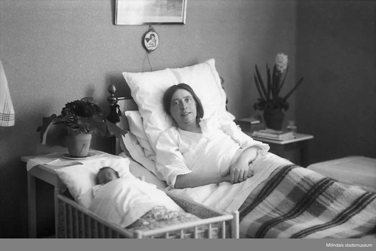 Ester Nyberg med nyfödda dottern Ulla vid Sävsjö privatklinik, 1927.
