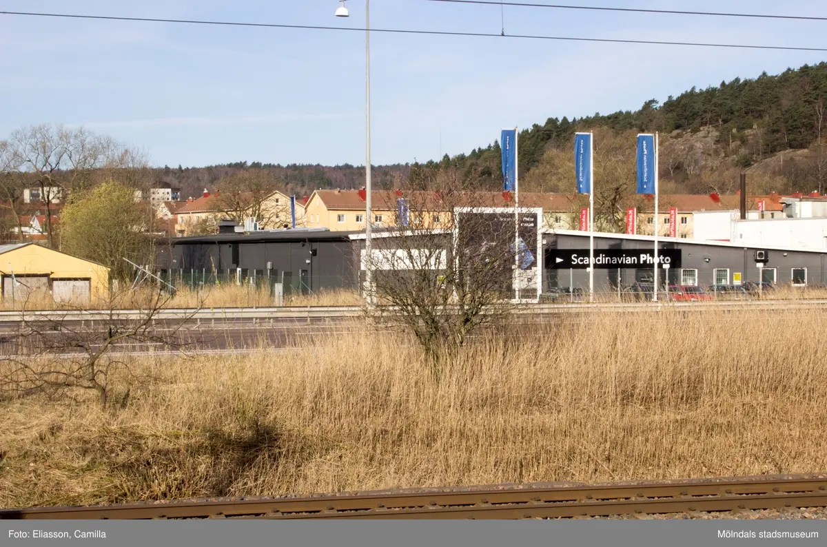 Närmast i bild ses Västkustbanan och Kungsbackaleden E6/E20. Lägenhetsområdet i bakgrunden ligger på Vänortsgatan. Till höger ser man Safjället. Höghusen till vänster i fonden ligger på Häradsgatan 27-31.